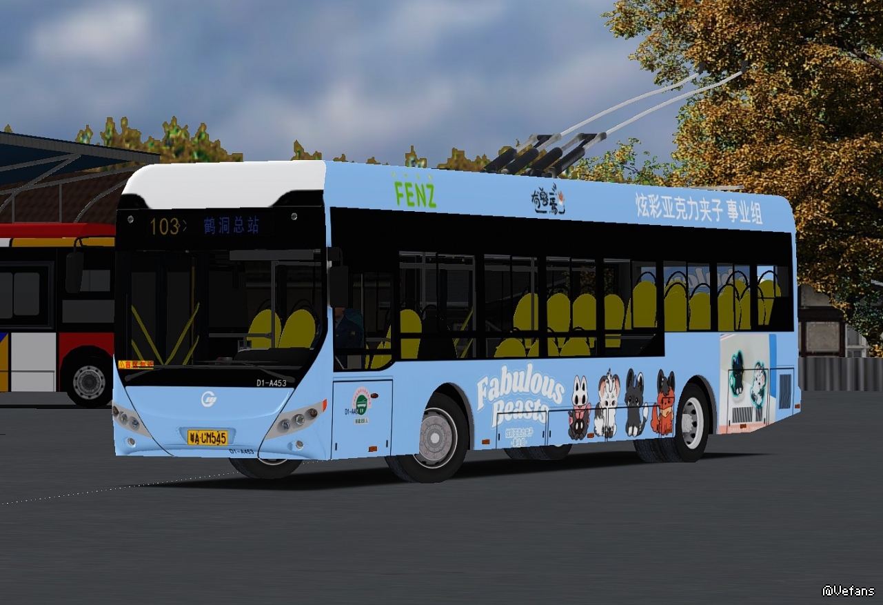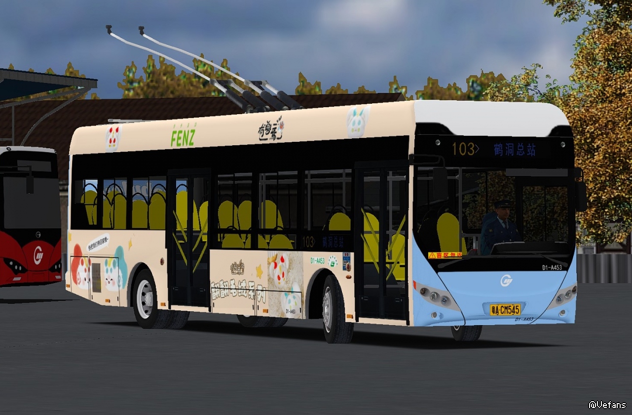广佛市103路A453无轨电车上完广后摆拍时司机突然升起了电杆