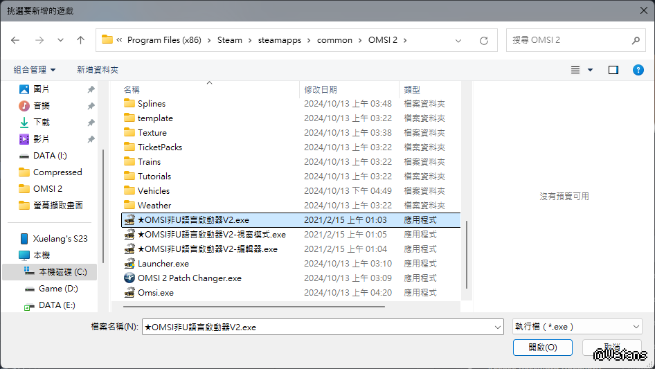 4.依需求選擇"★OMSI非U語言啟動器V2.exe","★OMSI非U語言啟動器V2-視窗模式.exe","★OMSI非U語言啟動器V2-編輯器.exe"