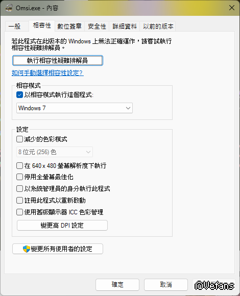 8.點"變更所有使用者設定">並勾選"以系統管理員的身分執行此程式">確定