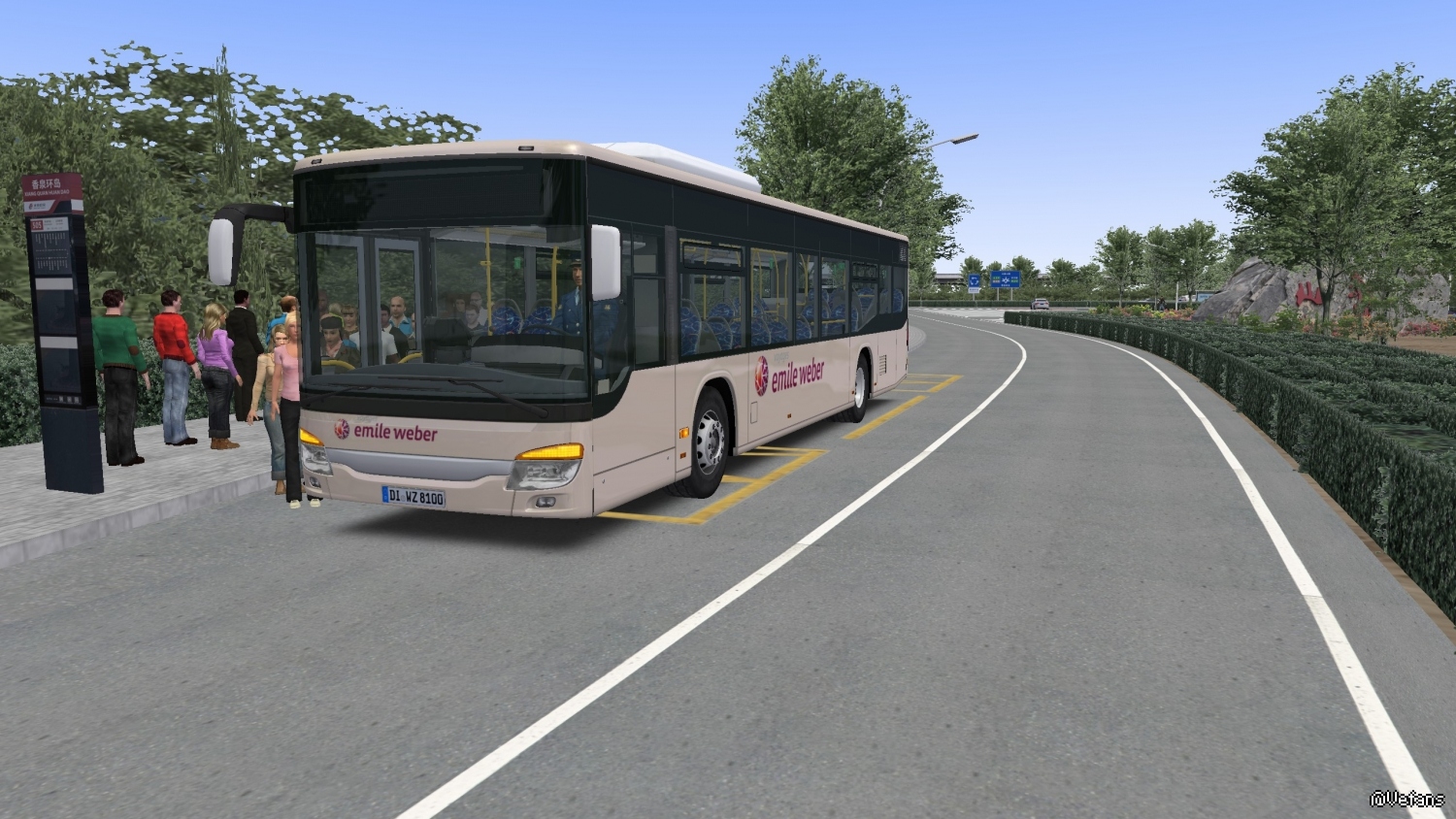 Buses can be customized by 10 setvars with included liveries from all the world.