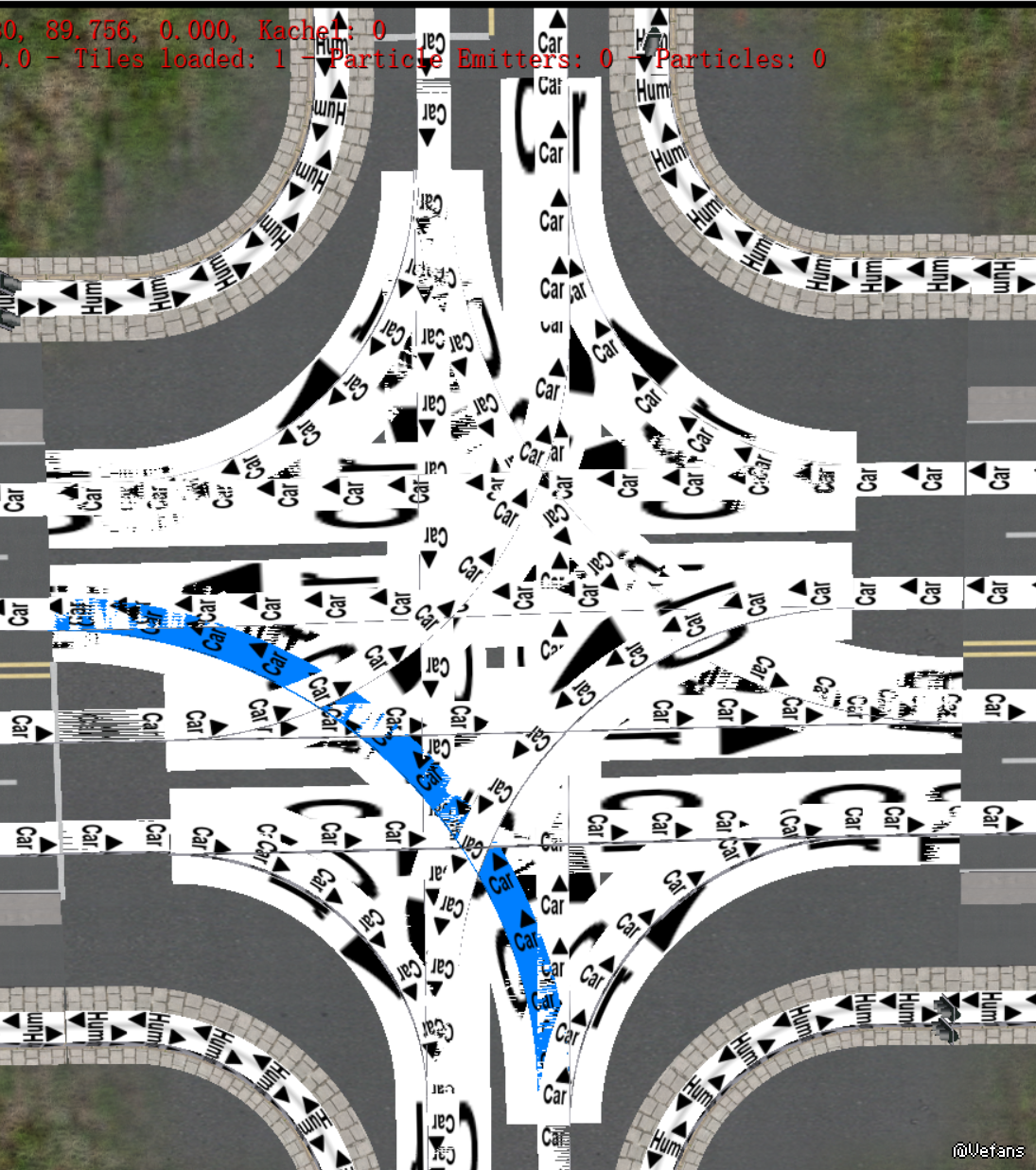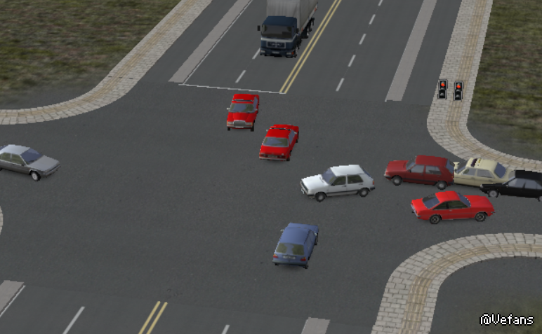 在游戏中,有车辆突然生成/消失在路口模型上,有时候生成的车行驶后会停等红绿灯,有时候直接在过路口模型消失