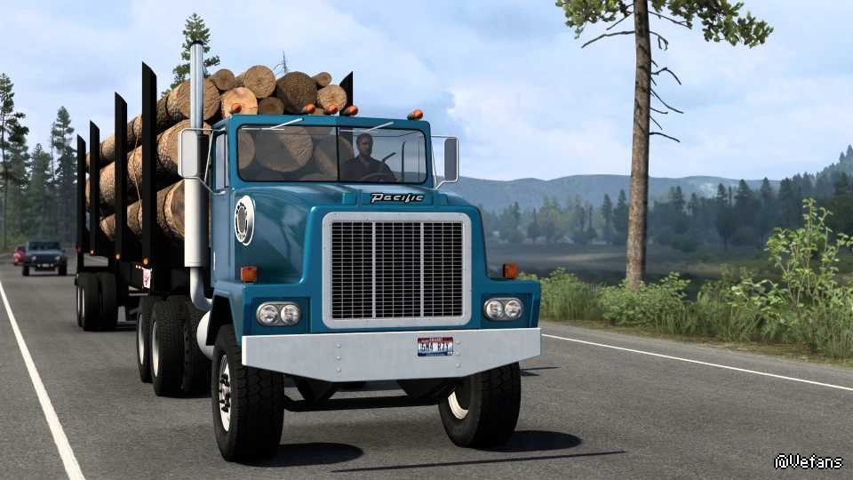 Pacific is one of the more notable former Canadian truck manufacturers, having a worldwide reputation for robust trucks in logging, oilfield, and a number of other demanding applications. The model P-500F comes from an interesting period in Pacific’s history where they were owned by International Harvester. It was made from about 1974 to 1981. A keen eye will notice that the cab on this model is shared with IH’s Paystar conventionals of the time. Some of the things that made the P-500 series remarkable in the on/off-highway market were robust construction, serviceability and exceptional ground clearance. While it’s quite a climb into the cab, the view is impressively commanding and even the most basic-spec Pacific trucks had interior trim rivaling other manufacturers’ premium offerings. This mod hopes to capture some of that majesty. Credits: Smarty