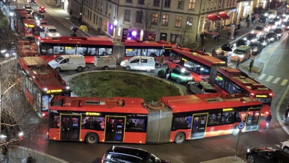» 挪威奥斯陆,4辆铰接成功封锁环岛