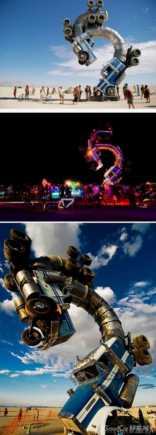 这个雕塑果然很猛 两个油罐车弄在一起了