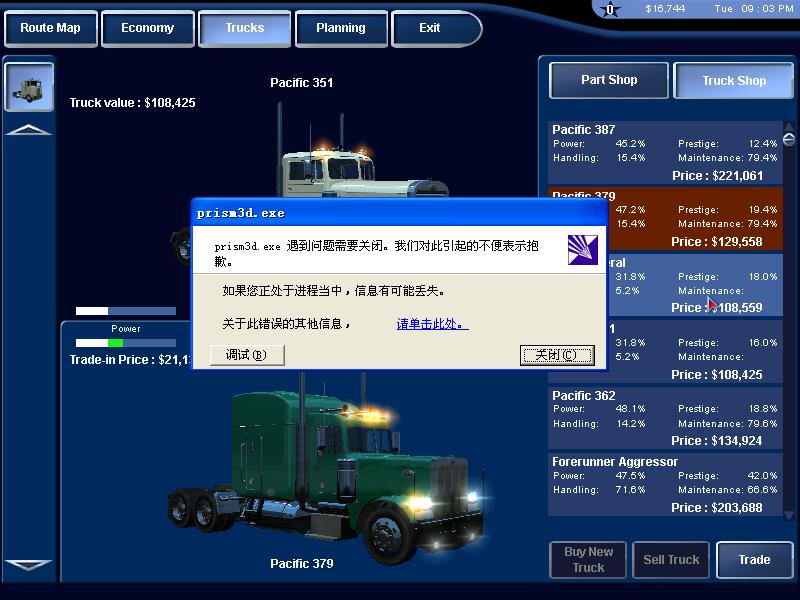 不知道是不是没安装"元旦补丁"的缘故,我一买车就出错.有的车可以选,有的不能选,一选就出错.