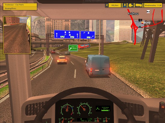 打开gps设定线路,台北-福州-广州。拉上货,开过跨海大桥,又回到祖国大陆这边,还是靠右行驶舒服。开到快到福州市附近的高速入口处发生了追尾事故。当时车速每小时50KM ,前面的一辆福特全顺突然急刹车。ricky跟着来了个紧急刹车,由于距离太近,追尾了。只听“咣”的一声,全顺的车屁股就被亲扁了。全顺的司机气急败坏的跳下车“你小子怎么开的车,下来,你看看把我车撞成什么样了”“晕,大哥。没办法我急刹车了,可距离太近,车停不下来。这样吧,我赔你2000块,你去修修车,应该也差不多了。”“倒霉,钱拿来,开上你的车走人吧”