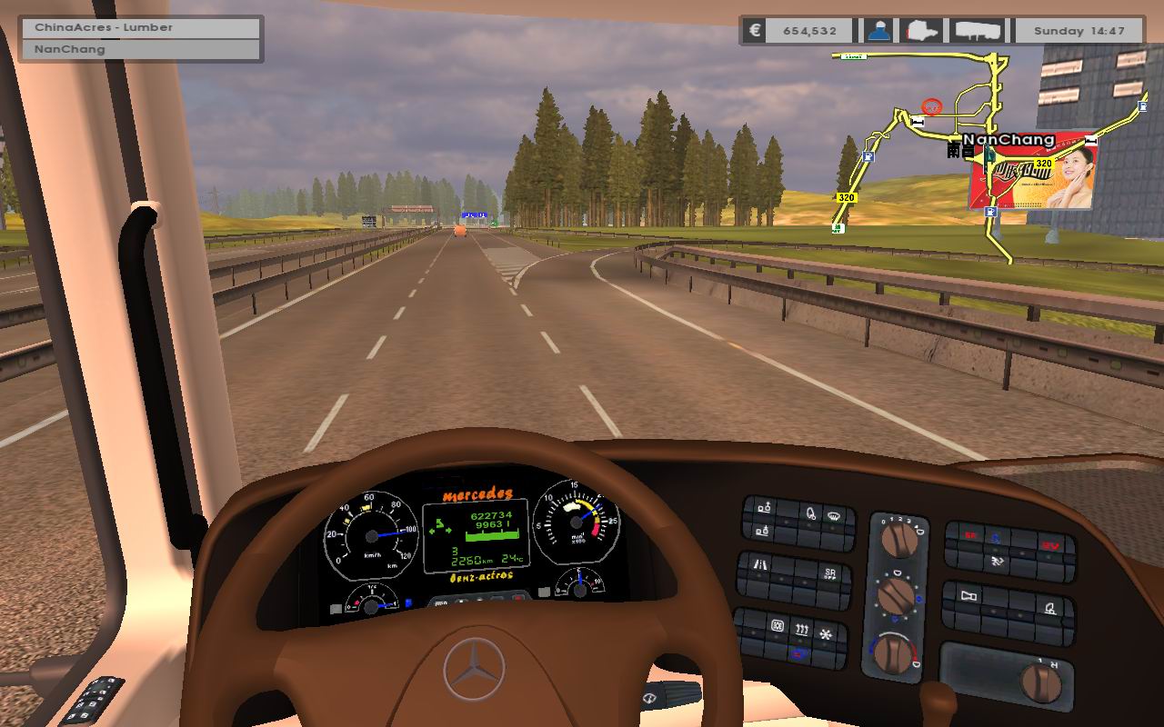 不知道大家有没有注意,我们在驾驶车辆的时候,有一些车辆所替代的是游戏中的奔驰车,而这些车辆是没有独立内饰的,比如说男人8*4或者10*6,这些车大部分使用的内饰是套用游戏当中的奔驰车的内饰,一开始我觉得每辆车都应该有自己的内饰,但在后来的驾驶过程中,我渐渐地发现,原来奔驰车的内饰更适合这些车辆,为什么这么说呢,在我驾驶的过程中,我明显感觉奔驰的方向盘的灵活性和可操控性要比原配内饰更加适合这些车辆,所以建议大家尽量不要去修改车辆的原配内饰,就使用奔驰的方向盘,这样可以更好更安全的驾驶车辆,安全地抵达货物的目的地,以下截图是我自己加配的豪华奔驰的内饰仪表,方向盘的灵活性和可操控性很不错,推荐大家使用。