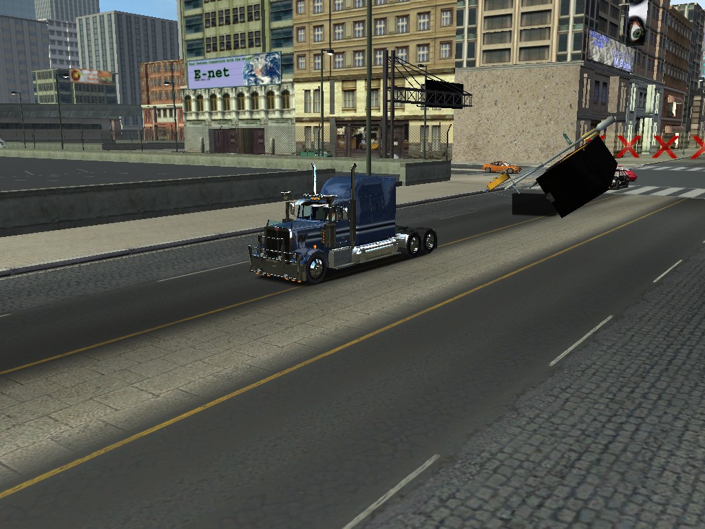 今天转弯时不小心刮到了灯柱,货柜给压翻了!