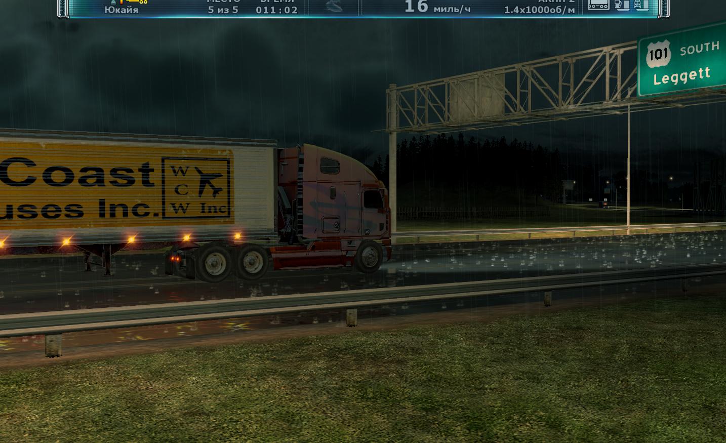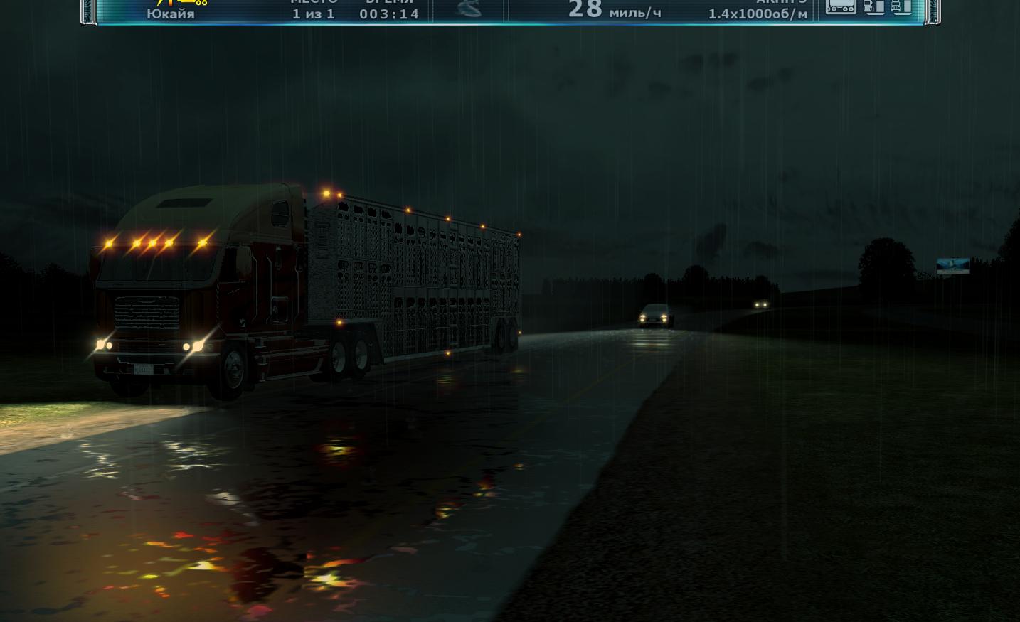 这游戏真不错 画面写实场景也很广阔加上自由的驾驶视角 很有感觉 还有不得不赞叹一下雨天效果 雨水打在地面有水花和积水 而行驶的车辆或是广告牌的灯光也都倒映在积水的路面上 车内视角不仅可以看到水花溅在车窗的效果 透过车窗上残余的积水看过去画面是扭曲的 这一点制作的很真实 在倾盆大雨的夜晚中驾驶一辆卡车 打开雨刷和远光灯 再放上一些抒情的音乐 行驶在加州的公路上 别有一番滋味