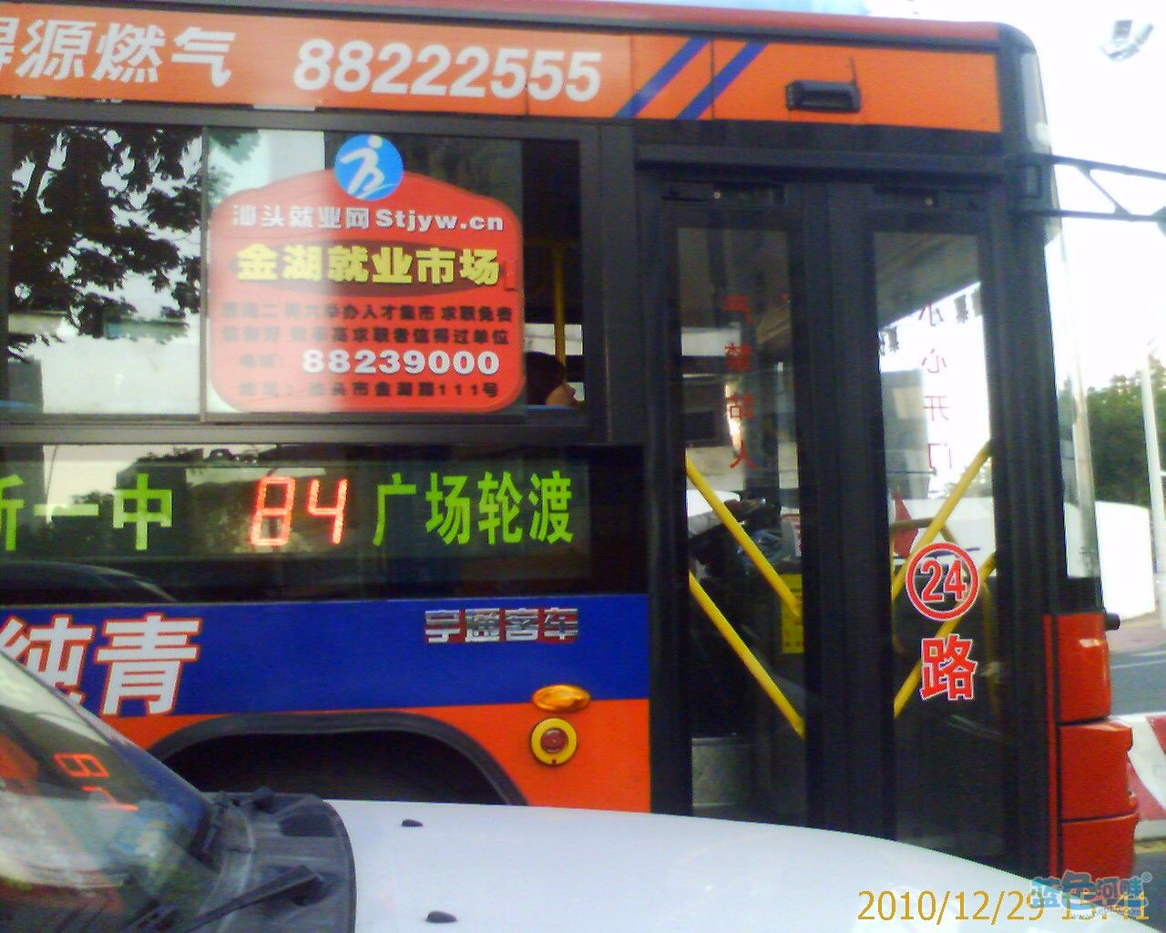 刚看一下,吓了一跳,汕头几时出到84路车了。待我定睛一看,前门的玻璃上又出现了非常熟悉的24,我这才惊醒,原来是车的号码版显示错误,居然犯这种低级错误,无语呀!