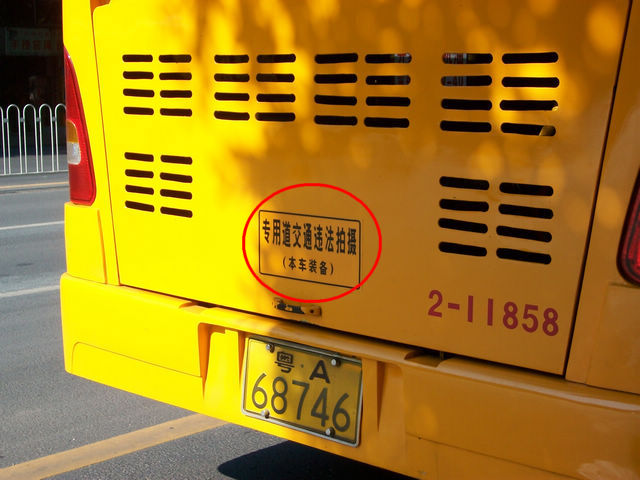 广州,自从早晚高峰期实施公交车专用道后,依然有不少社会车辆驶入专用道,于是相关部门除了在相关路面装"电子眼",更在移动的公交车上安装违拍设备,对违章车辆进行捉拍,并贴上标示,好提醒大家明明白白地"消费".....