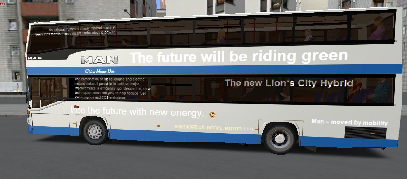 Lion's City Hybrid的二氧化碳排放低,亦只是普通巴士的三成,亦可使用快速充電設施,30分鐘內完成充電。 與早前歐五車一樣,入口設有輪椅斜板,車身可降的功能,方便長者使用。上車門與下車門之間為不設梯級,除了設有專供輪椅停放的位置外,通道也特別闊,還有12個靠近門的座椅,與舊式巴士不設低地台區的相比,優越十萬倍,配合大車窗,使乘客能欣賞景色。巴士上採用春山牌硬膠乳膠皮座椅以被免座椅被鎅爛再次發生。