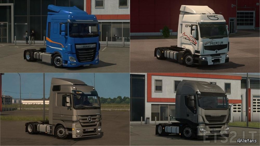 New in v2.2– Added spare wheel for MP3 & New Actros.– Reworked rear fender on New Actros.– Added chrome/steel/painted fueltanks for New Actros, the painted use the base color of the paintjob.– Added new spoilers/fenders for New Actros.– Added shorted spoilers for MP3 MegaSpace cab.– Fixed number plates icons and added plates for Volvo FH16.
