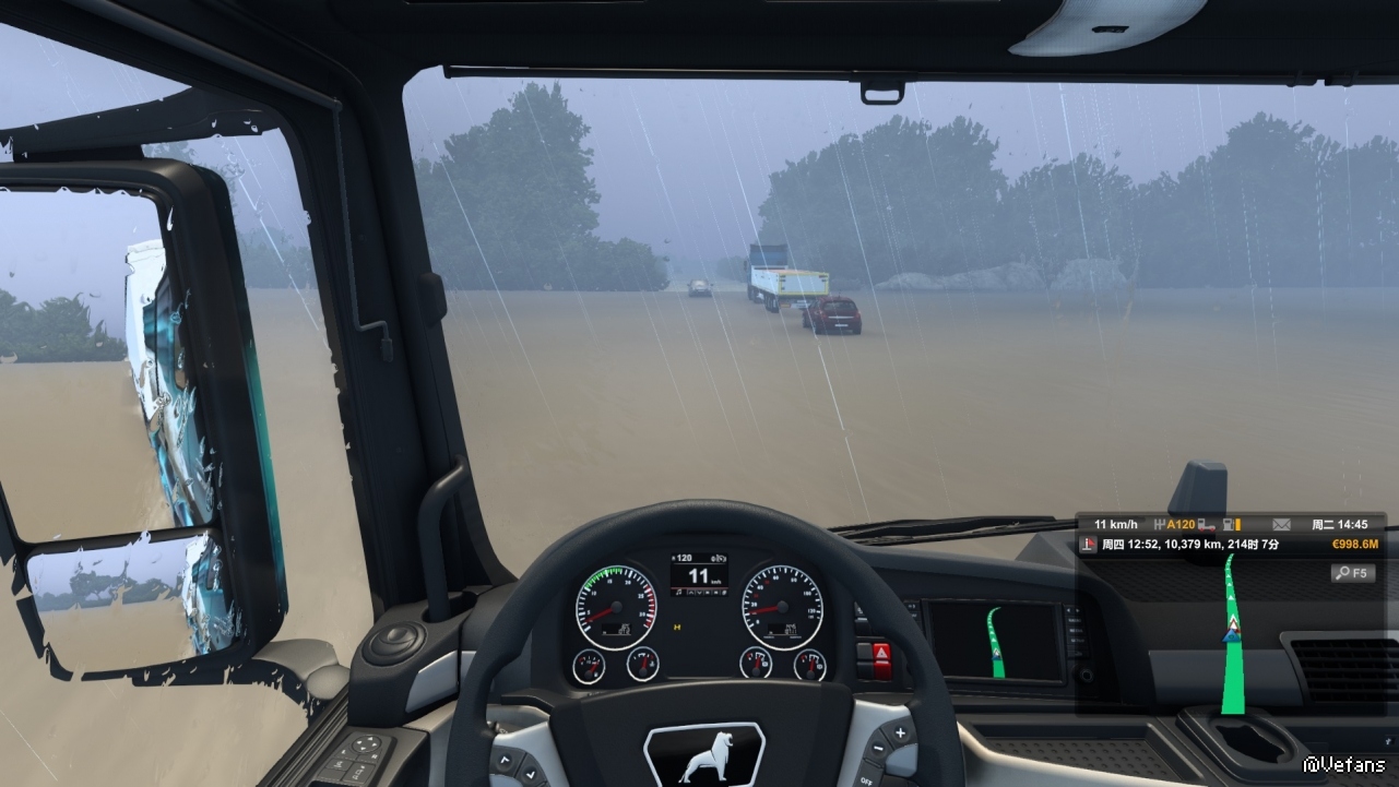 太难走了,大雨、大风、大水,大雾,总之几乎都看不见路,只能据导航跌跌撞撞往前挪