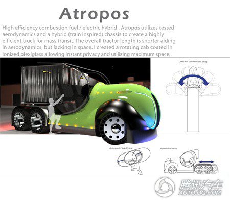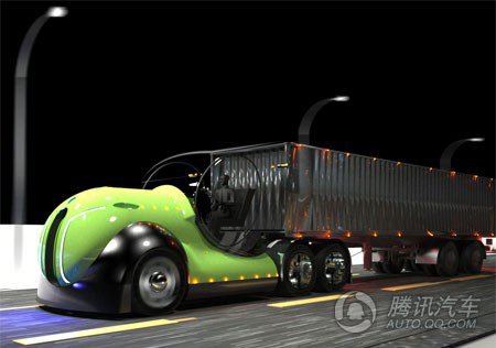 驾驶室的玻璃是电离的,司机可以根据自己的喜好选择自己喜欢的颜色。所在地的景色也将因为这种玻璃颜色被修改。司机可以从车顶看到景色,而不仅仅是这看到车窗两边的。这种流线型空气动力学设计灵感来火车头和DTM的赛车。该挡泥板打扫提供最低限度的阻力,同时,光滑轮罩让空气毫不费力地通过,就像一架飞机机头。转弯的时候,这辆卡车可以像一个弯弓一样,顺利转弯。