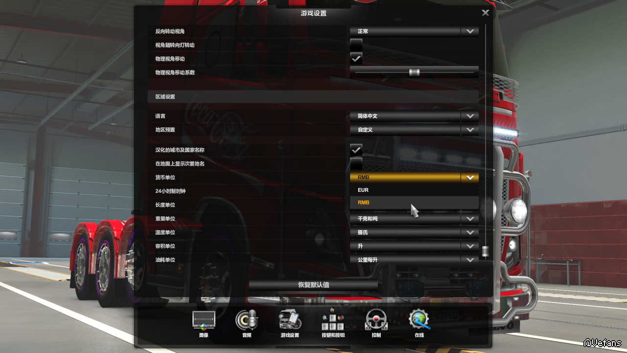 把游戏货币换成人民币,如图所示。此MOD一定要放在其他跟金钱、经济有关的MOD之上,比如真实油价、双倍工资之类的MOD。