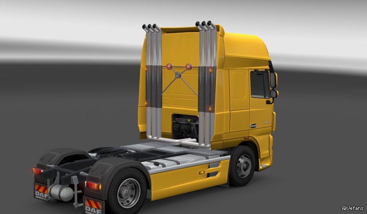 Mod adds high exhaust pipes (per cab) to a large number of trucks