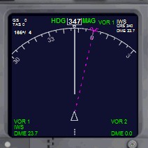 单位英尺,黄色的粗线代表地面海拔,粉色方框代表自动驾驶仪目标高度。它旁边的扇形仪表是垂直速度计。