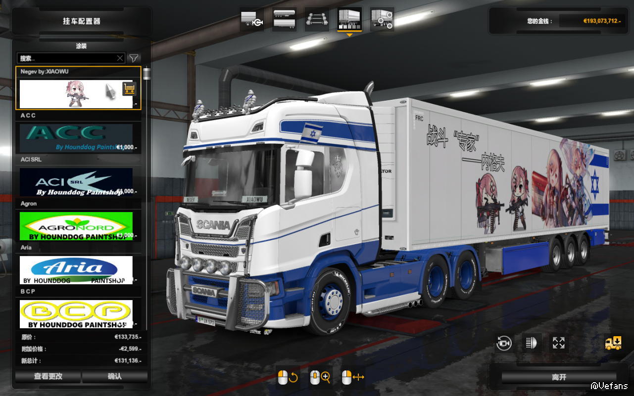 【介绍】:目前只支持除克劳耐与施密茨穆勒外的可购买原版挂车,只需要在游戏里拥有1欧元即可使用此皮肤,使用开顶的货柜会出现梯子变红的BUG,无金属漆版本,不可调色,人形图片真找不到分辨率更高的了,比较粗糙,请各位见谅