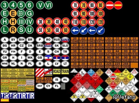 The mod is represented by over 376 signs marking trucks in different categories country codes, speed limit, warning, ecology warning and others.