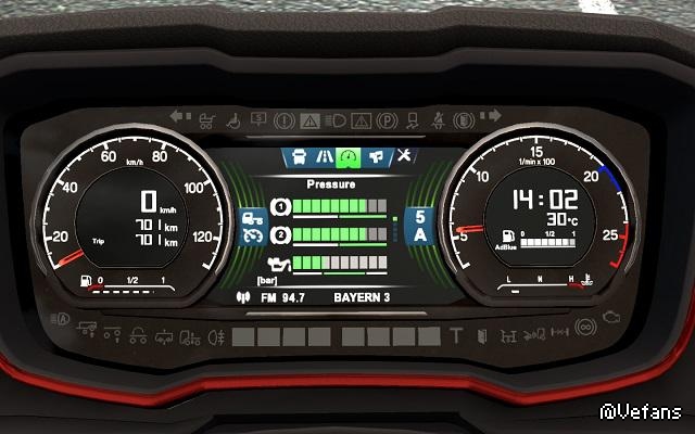 The color of the panel is changed using Scania Custom Dashboard Addon