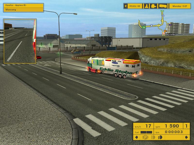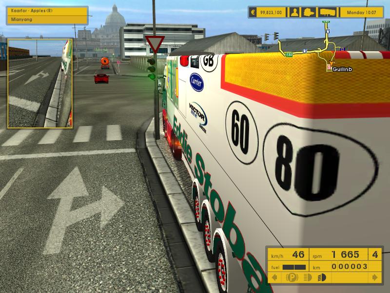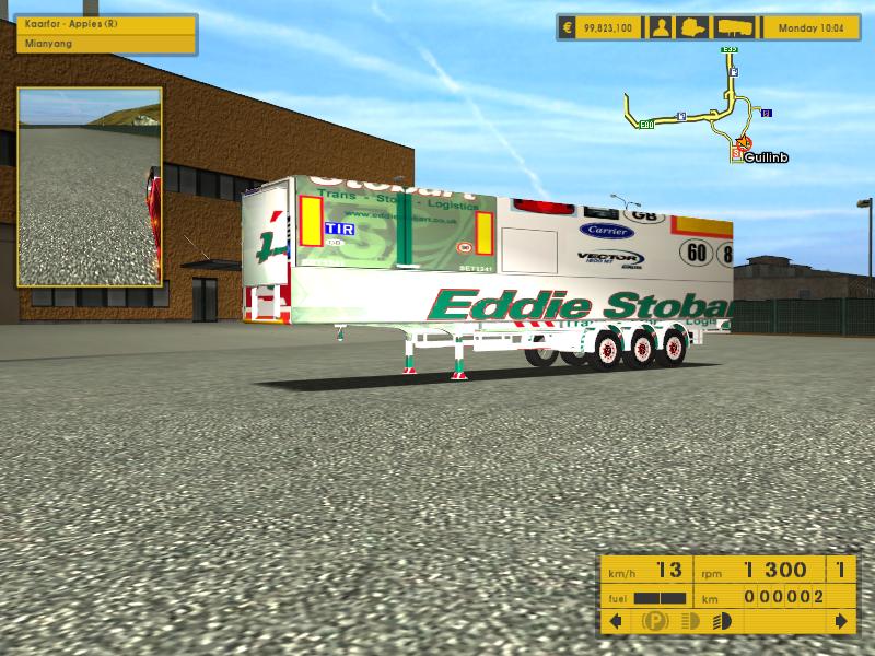 介绍:这是在ets1.3中测试的车头和皮肤。皮肤原来只能在stokes公司中才能拉到,我把皮肤复制到eurogoodies、trameri公司,货柜是reefer。货物: