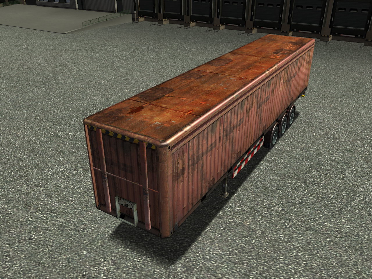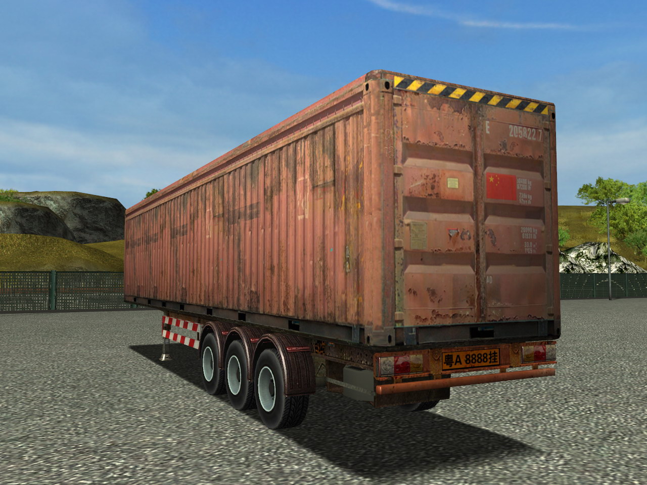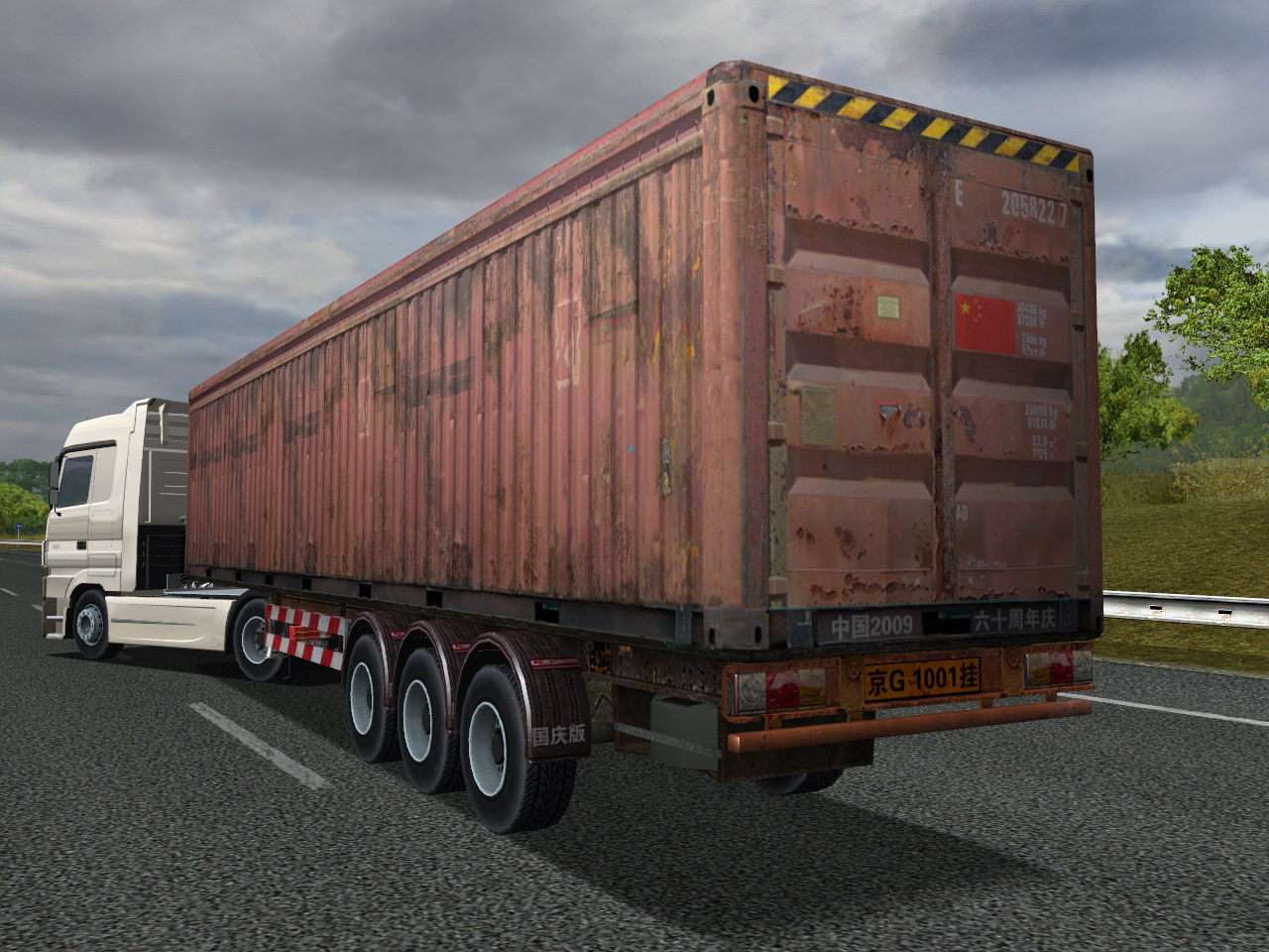 今天经过四个小时奋斗,终于初步完成了第一款模拟真实型货柜皮肤,这个货柜是基于ETS原版货柜制作的,素材是我历经艰辛得来的,网络绝对找不到这样的素材(起码现在我还没找到过类似的 ^_^)。此皮肤清晰度(分辨率)是ETS原版货柜的两倍,属于高清皮肤。由于只是贴图制作,所以无法修改原版的模型,将就下吧。