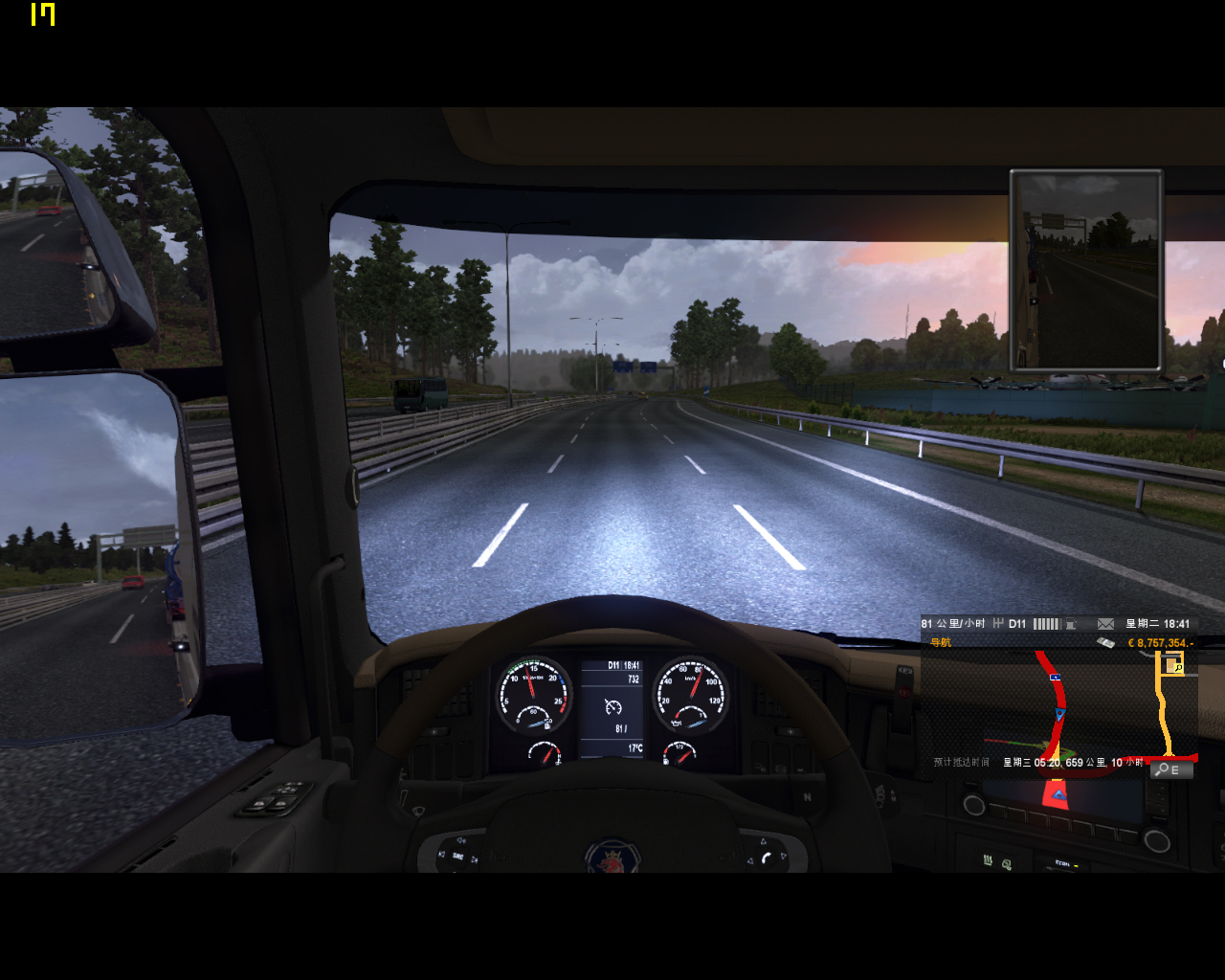 另外驾驶室视角 帧数比车外几乎低一倍。。。。