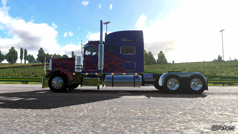 昨天发了一个类似的MOD,结果原作者制作有问题玩不了,受此启发,我自己试着利用既有的彼得389制作一款擎天柱的车头皮肤,由于技术有限,不一定完全真实达到完美,先放图看看效果
