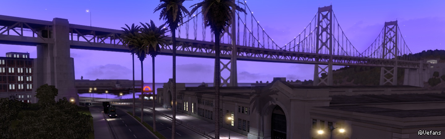 Los Angeles and San Francisco are huge cities in the American Truck Simulator map. We haven't tried to portray sprawling agglomerations of this type in our games until now, though there was a bit of a hint of it in 18 Wheels of Steel Long Haul. Our ambition is higher now, as we want to capture the feeling of driving in an actual US city, which is quite different from typical European locations.
