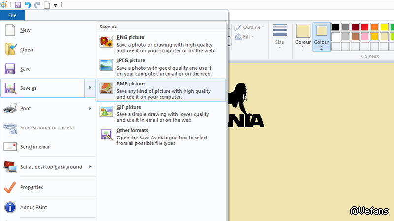 按FILE > SAVE AS > 以BMP作為SAVE格式
