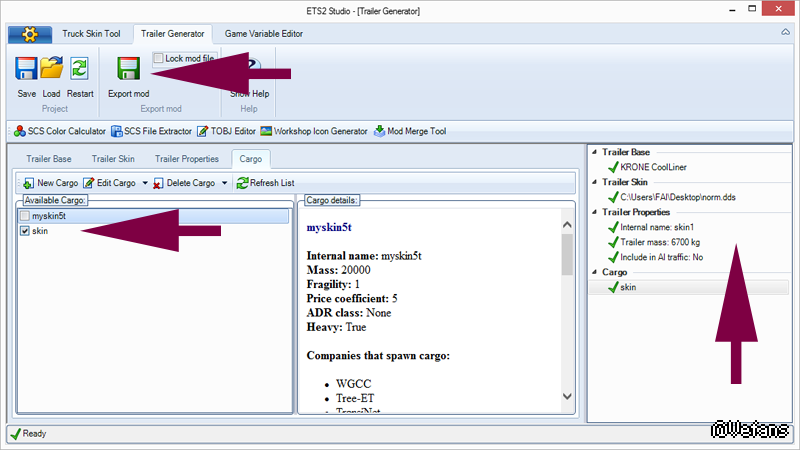 勾回剛剛設定好的資料, 看到右邊全綠代表資料齊全,可以按EXPORT MOD (它是自動SAVE成一個MOD)