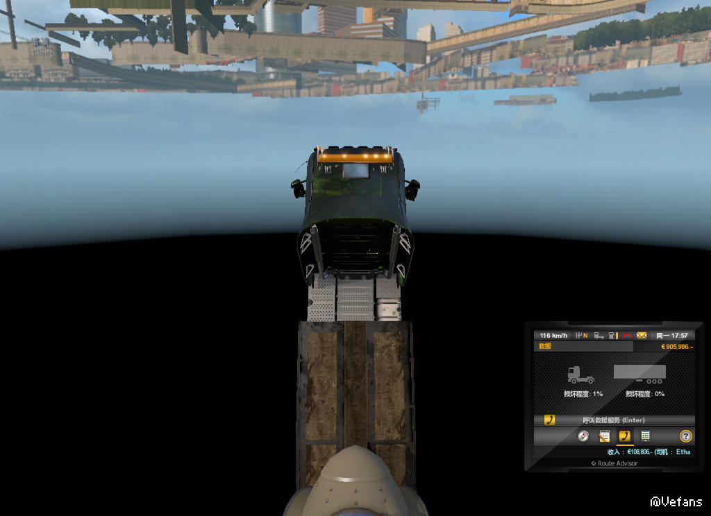 这就是BUG把 在公路上开着开着就掉地狱下去了 在里面自己还能扭动.
