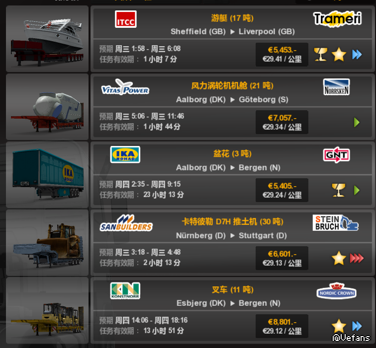 说汉化其实也是领任务时介绍货物是什么的文字变成中文。一些农用车品牌网上都没有中文讨论过,只好自己开先河了,其余的按在大陆地区较为通用的译名翻译。为了让大家弄懂到底拉的货物到底是干什么的,每个货柜名字后面额外增加了类型,比如“利勃海尔 LTM 1060 吊车”、“梅赛德斯-奔驰 拖拉机 800 高速型”。