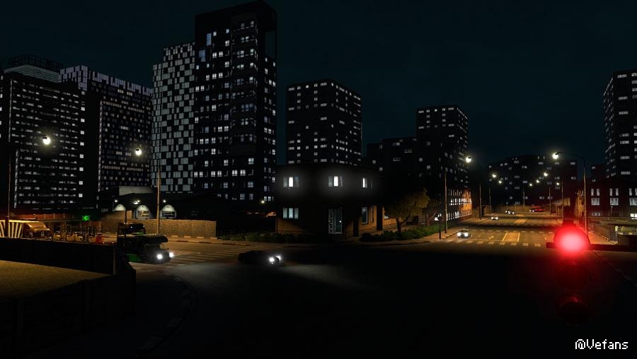 This mod reduces the brightness and the number of windows that are lit on buildings at night to produce a more realistic effect.