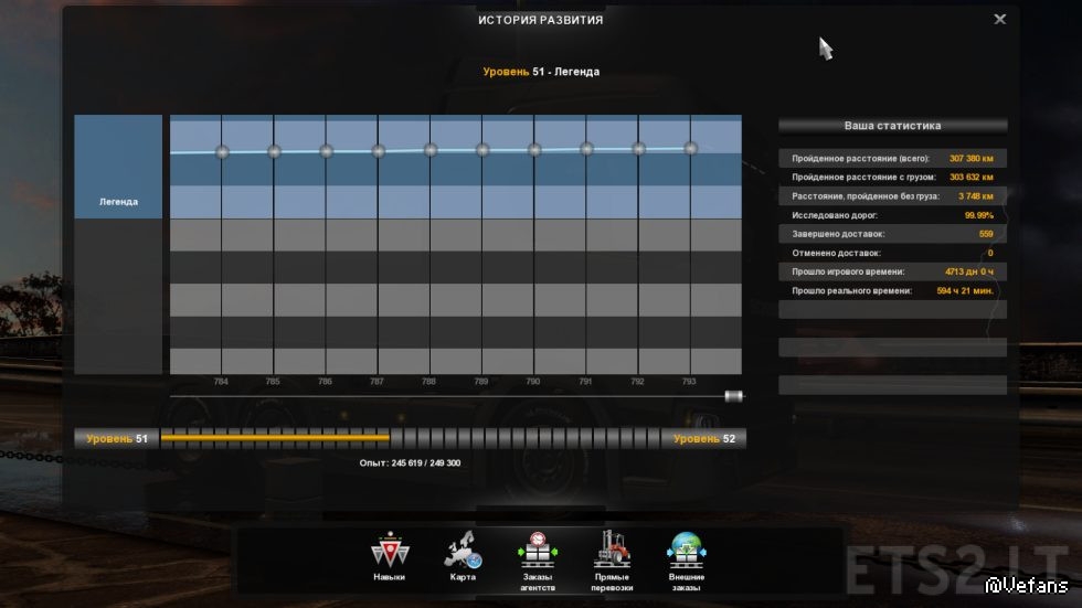 02. The profile level is 51 (245619). Bought 133 cars in the garage is 1 car Scania 730