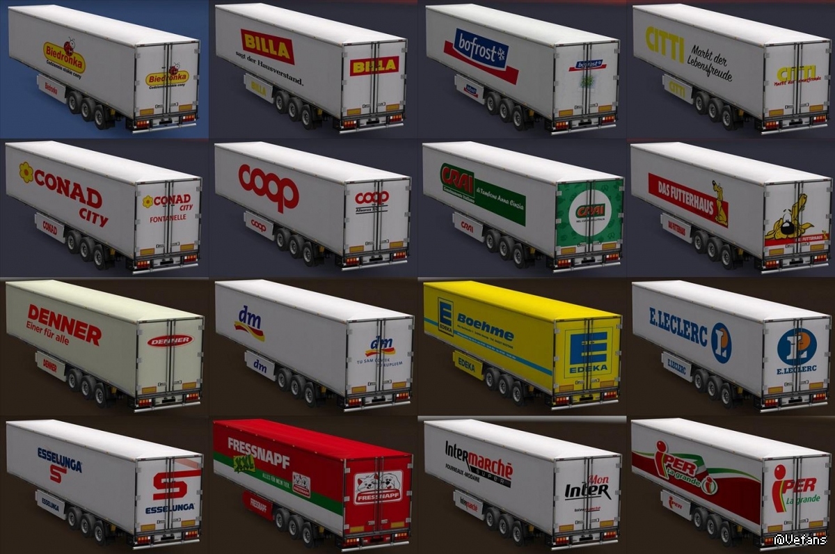 Pack of 32 trailers of real European supermarkets, working in traffic and jobs.