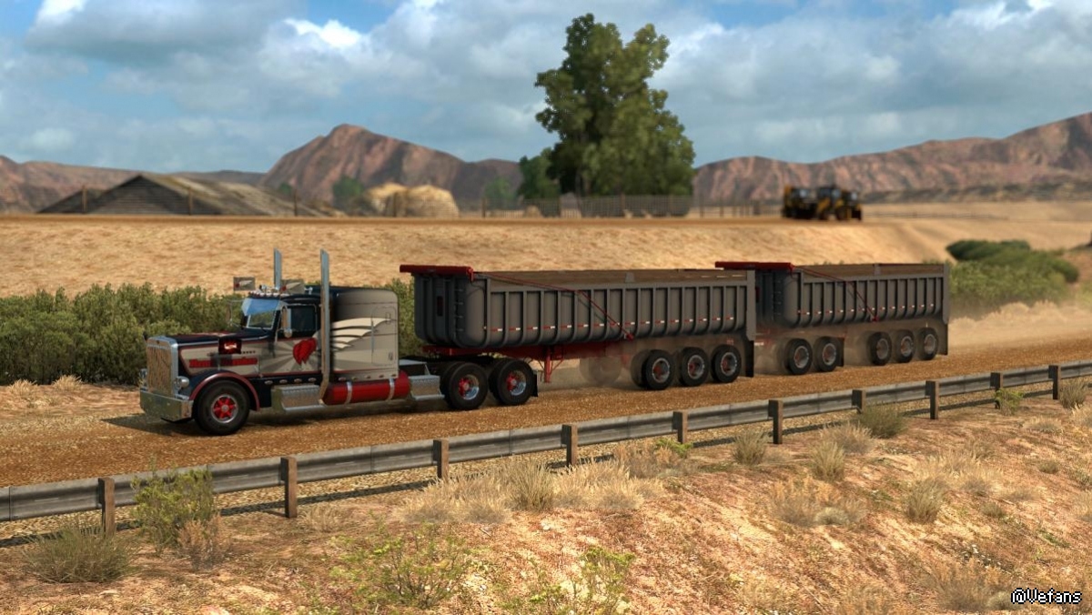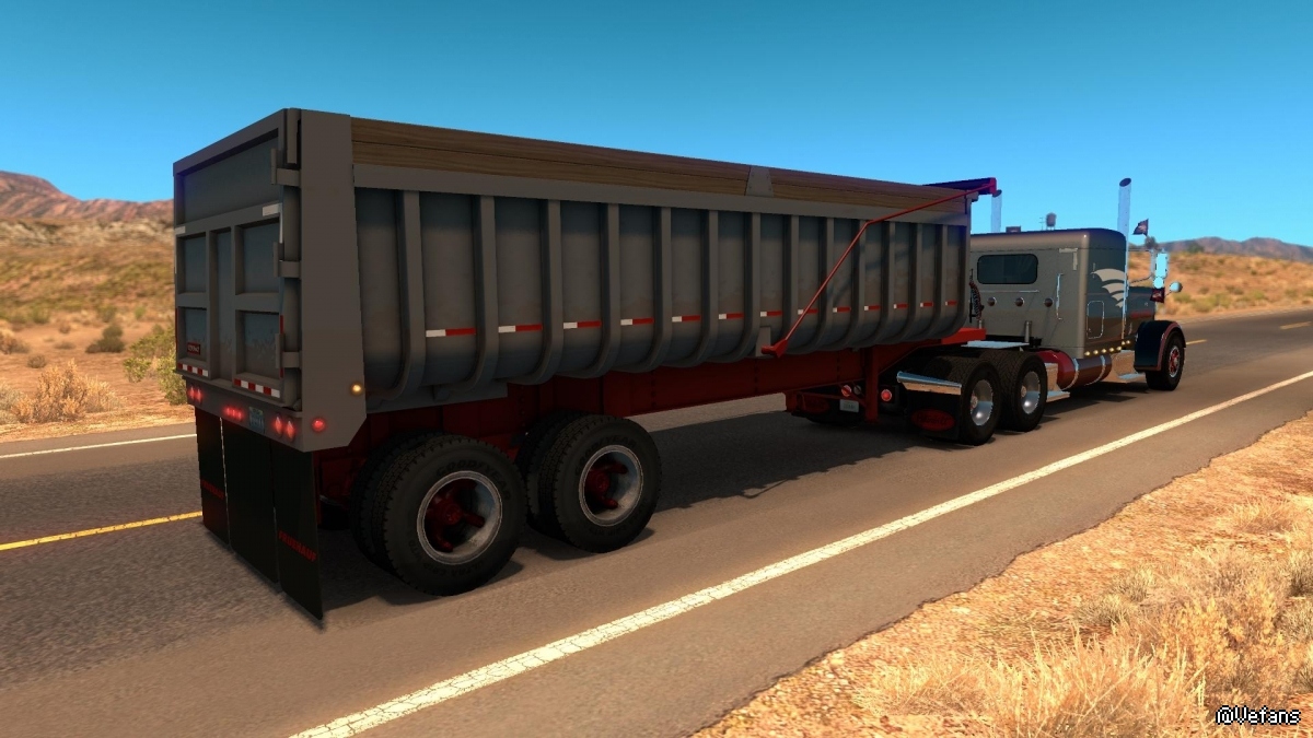 The 1973 Fruehauf Dump trailer. This mod contains two different versions of the trailer, a two axle version with short tub and three axle with lift axle and larger tub. Also includes Doubles. Allows you to haul anything from the standard gravel and sand to different loads like hay and brick debris.