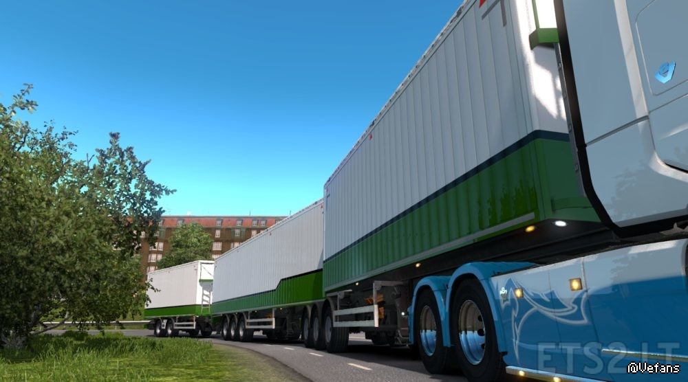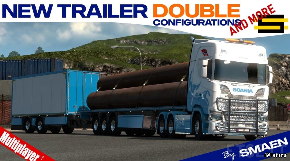 This mod adds a crapton of new B-double trailer combos, allows flatbed to be used in doubles (both types), adds aero trailer in B-double (not customisable except wheels), some triple trailer configs and