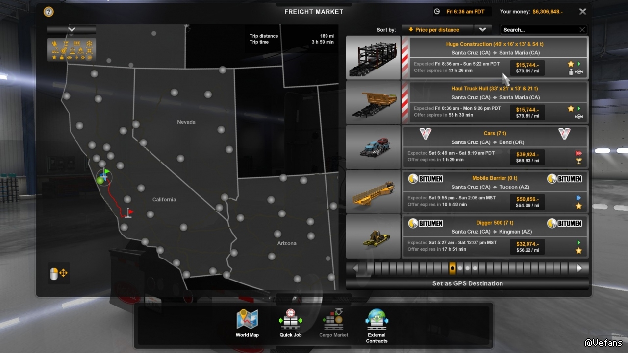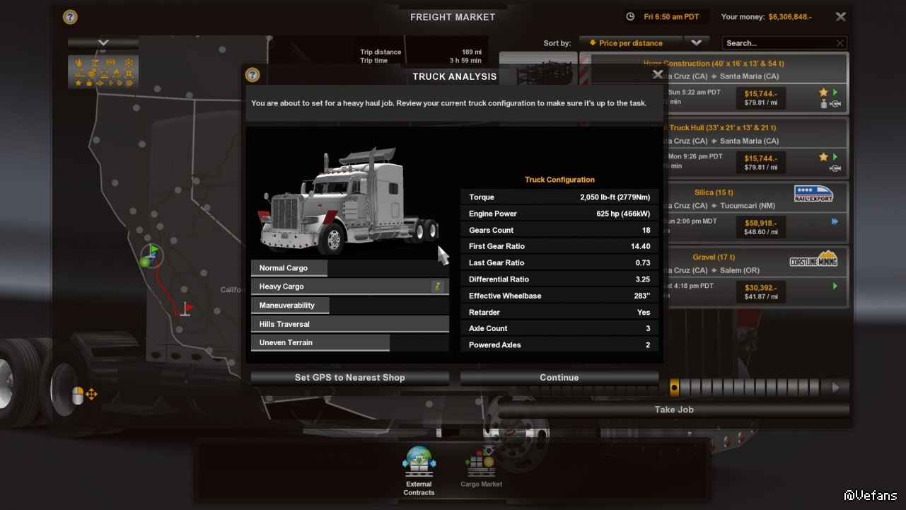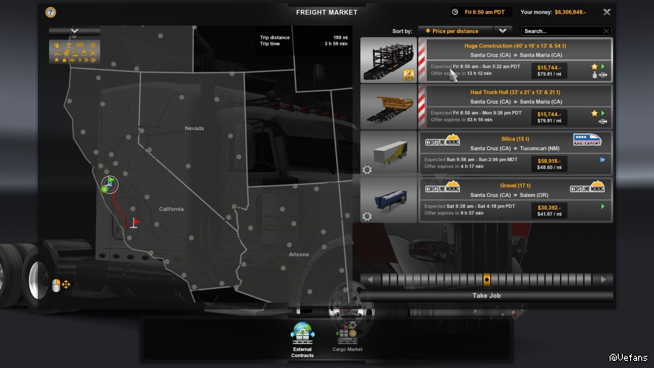 首先先找找附近的大件運輸任務,挑了個最重的,54噸,而且也不遠,在Santa Maria。