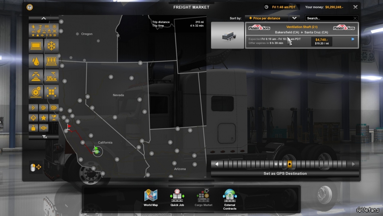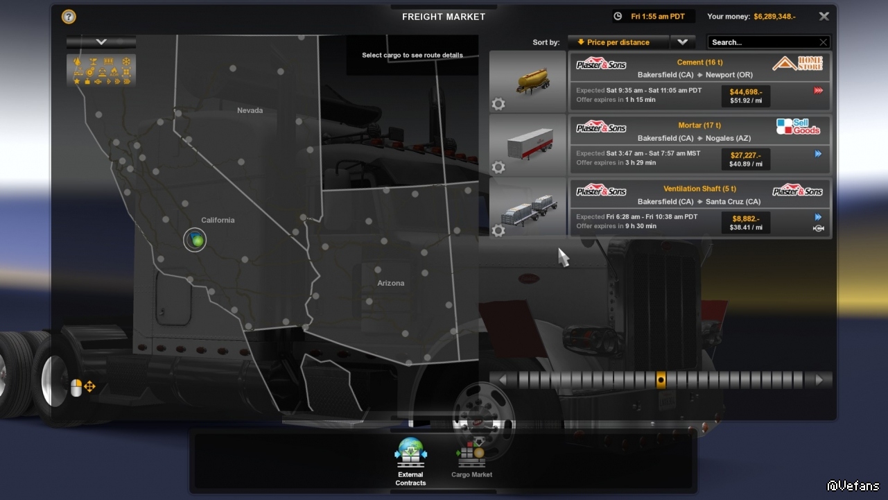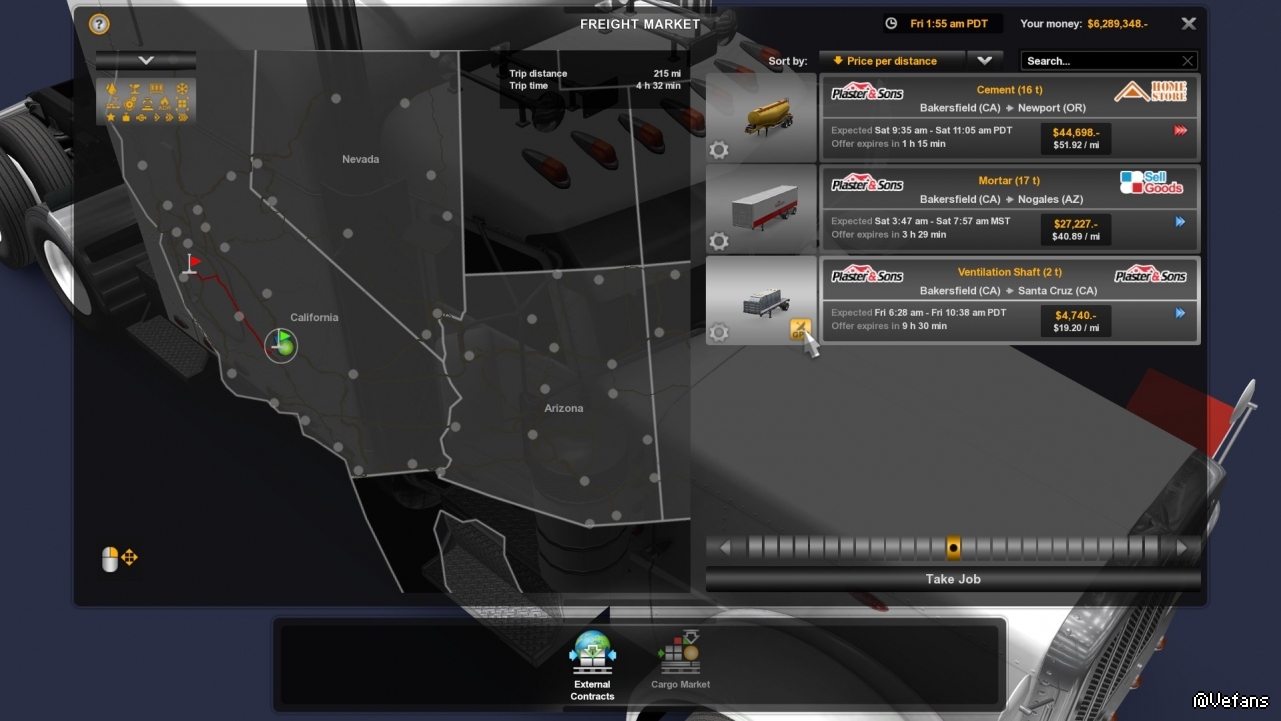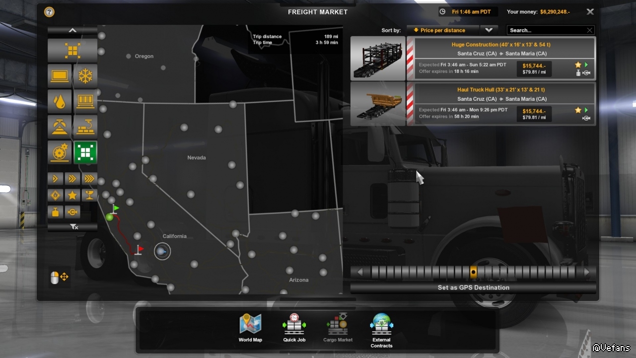 首先先找找附近的大件運輸任務,挑了個最重的,54噸,而且也不遠,在Santa Maria。