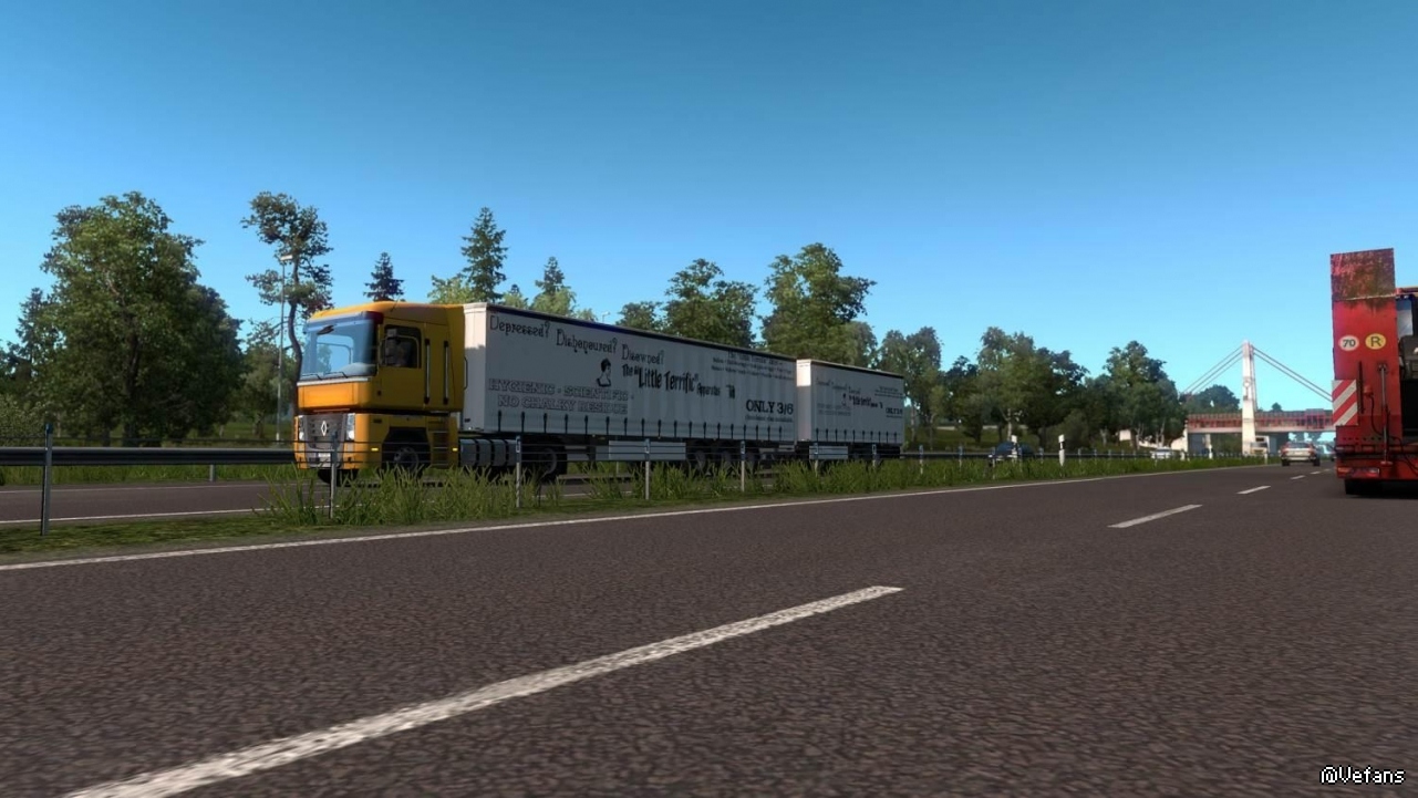 Drawbar and B-double versions of the new SCS box vans, curtainsiders, insulated trailers and reefers; drawbar double Profiliners using the v1.31 model (so you don't need the Krone DLC).