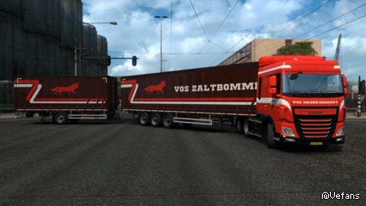 Vos Logistics Scania R, Scania R (RJL) and DAF XF Euro6 truck and trailer skin for vanilla game SCS trailers, so not for DLC and modded trailers.