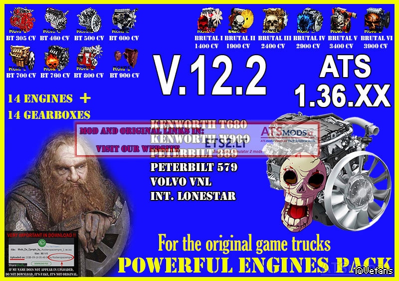 With three types of sound. Normal, V8 and V8 Open Pipe Sound.【版权】:Credits Sounds: kriechbaum, Scs. Models: Scs. Testers: Cupido, Salsambo, TurcoTron, Rockeropasiempre. Autor: Rockeropasiempre.