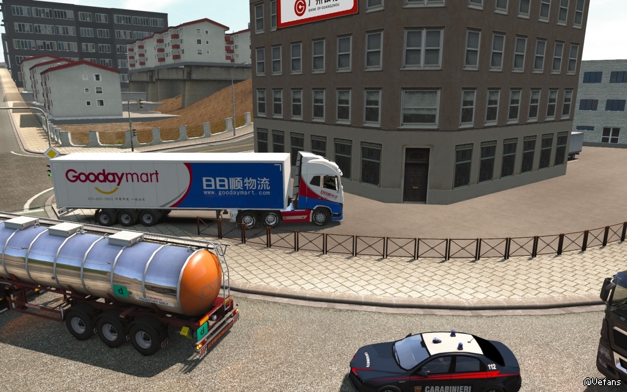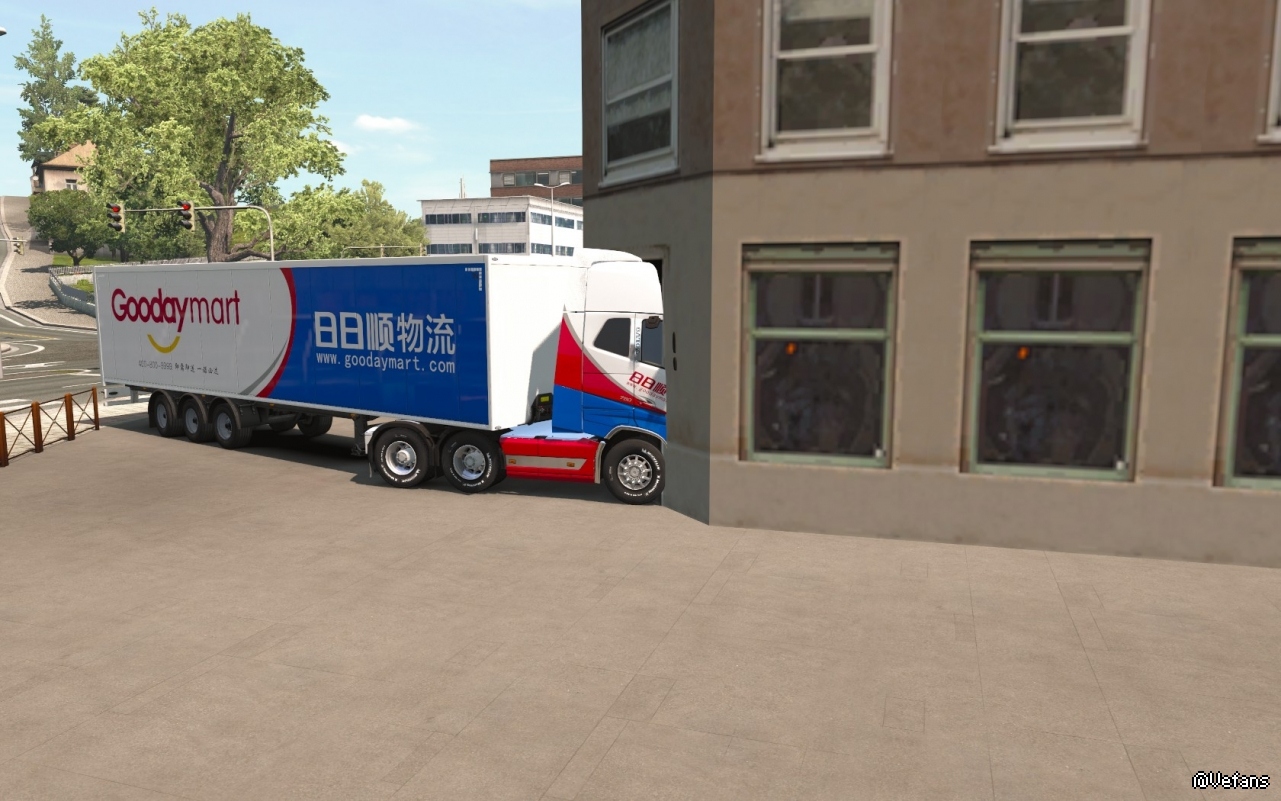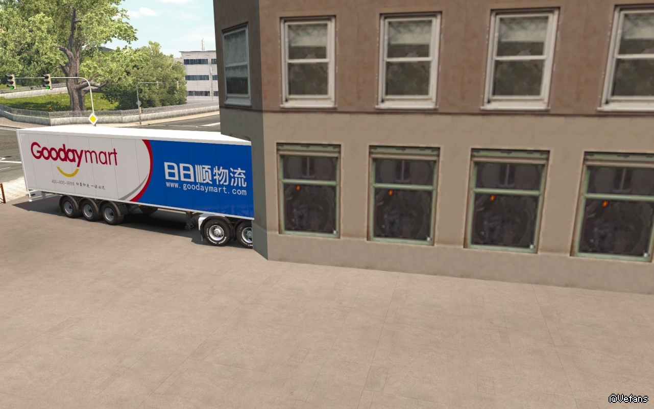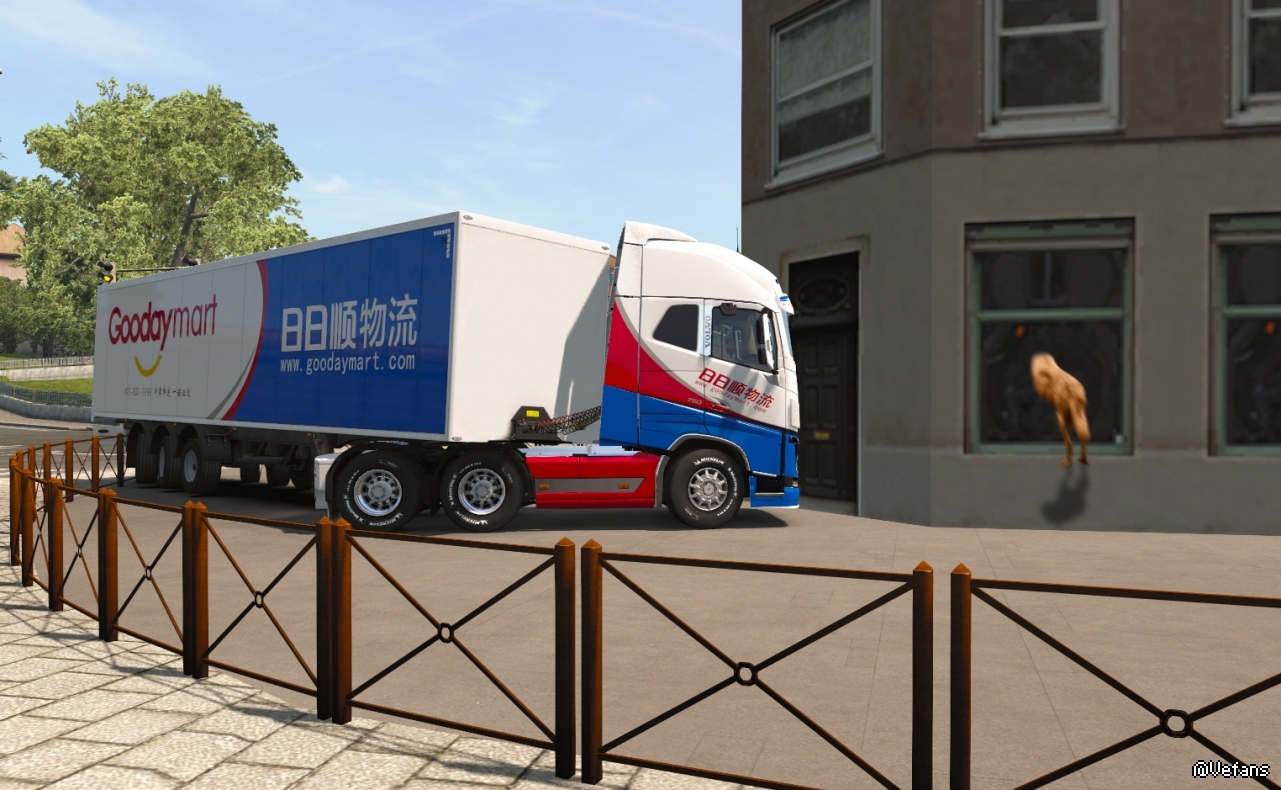 这天,小编开着刚完成涂装的日日顺卡车在街上溜达。