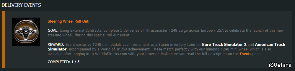☐ 慶祝圖馬司特T248發售(表現方式:拍攝活動中出現的特別掛接車)【符合以上主題的投稿之一獎勵6通匯,同時總得票分值2倍】【注意事項:必須額外提供一張包含WORLD OF TRUCKS活動進度顯示的主介面相片,否則不計入本期額外加分主題範疇】