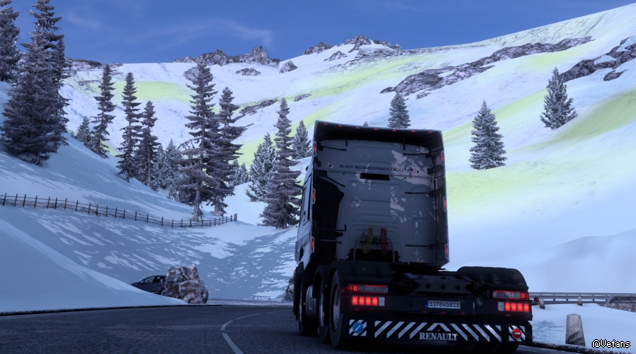 不得不说,奥地利的山路配上雪地模组是真的很壮观,有一张在玩Promods冰岛的错觉