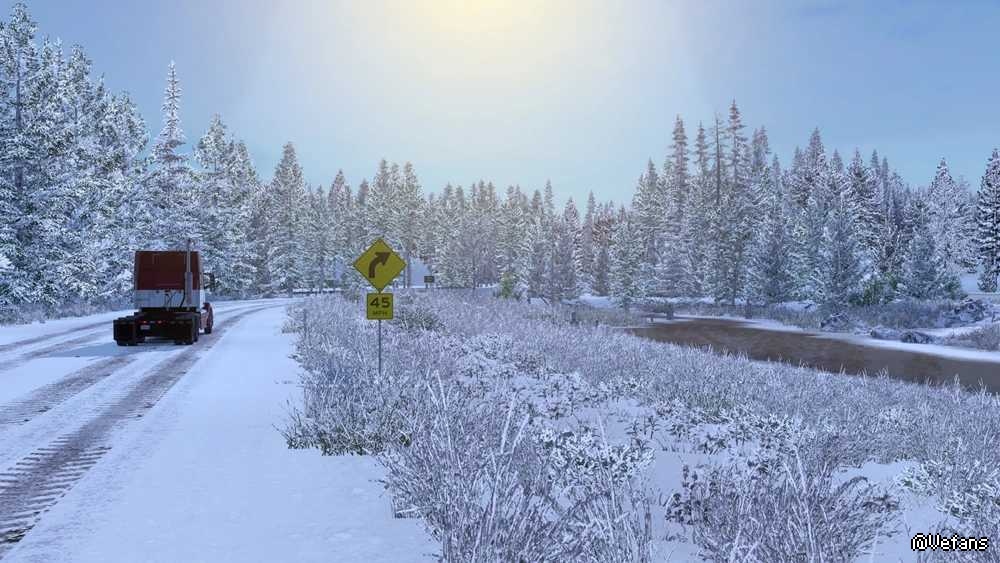 This mod simulates winter for American Truck Simulator.