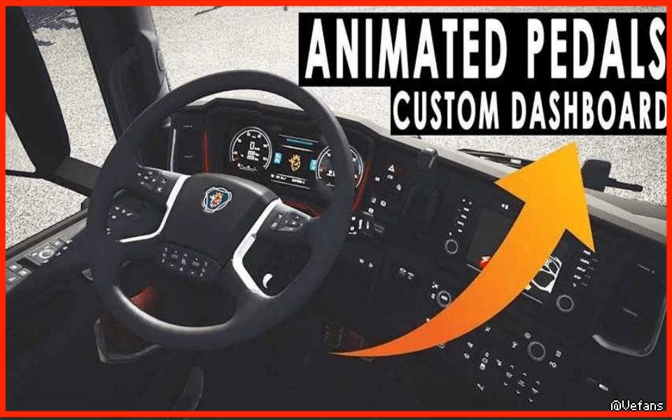 – Animated Steering Wheel and Pedals + Custom dashboard for the Scania R & S of 2016