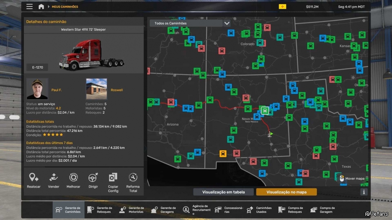 GARAGE 86 TRUCKS 400 DRIVERS 400 TRAILERS 140 MONEY 511.155.324 MAP EXPLORED 17.80% UNLOCKED ALL CITIES UNLOCKED ALL GARAGE UNLOCKED ALL DEALERS